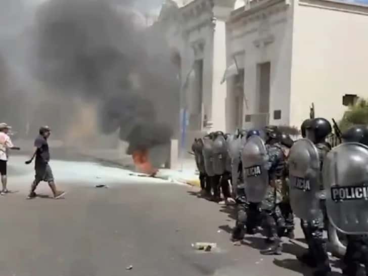 Los agentes reaccionaron, trataron de apagar el fuego, pero tiraron gas pimienta a los compañeros del repartidor, los cuales previamente se acercaban a los efectivos para que los dejaran pasar y aclamar el pedido de justicia ante las autoridades.